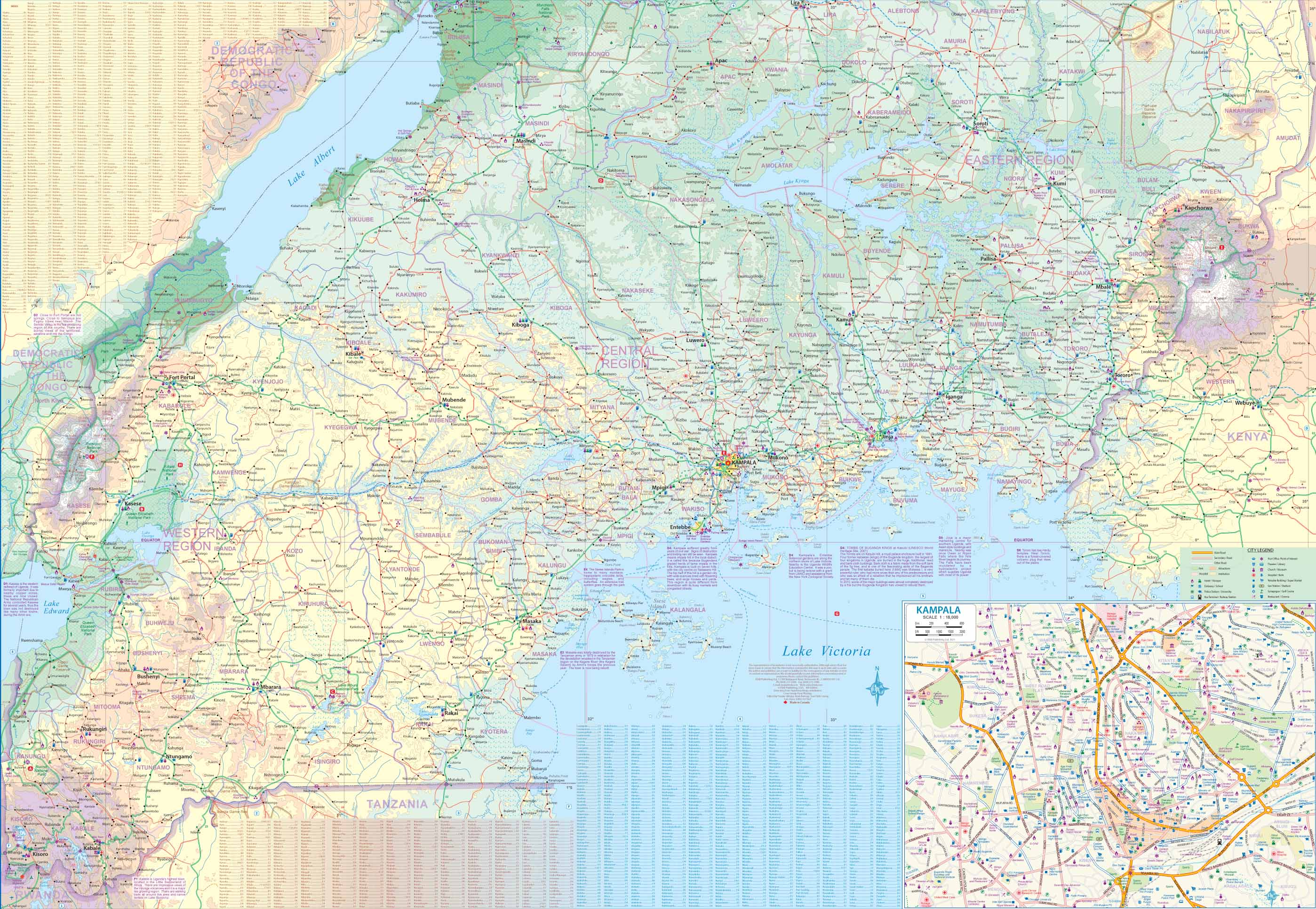 Uganda is one of the most interesting countries in Africa to visit. Side 1 covers the touristic northern half of the country, with Murchison Falls National Park and its many safari lodges dominating. In the far north is Kidepo National Park, wilder and less visited and therefore more pristine. In the east is Mount Elgin. Side 2 is dominated by Kampala, the capital, and is the heartland of the Bugandan people. And Lake Victoria, shared with Neighbouring Tanzania And Kenya.
