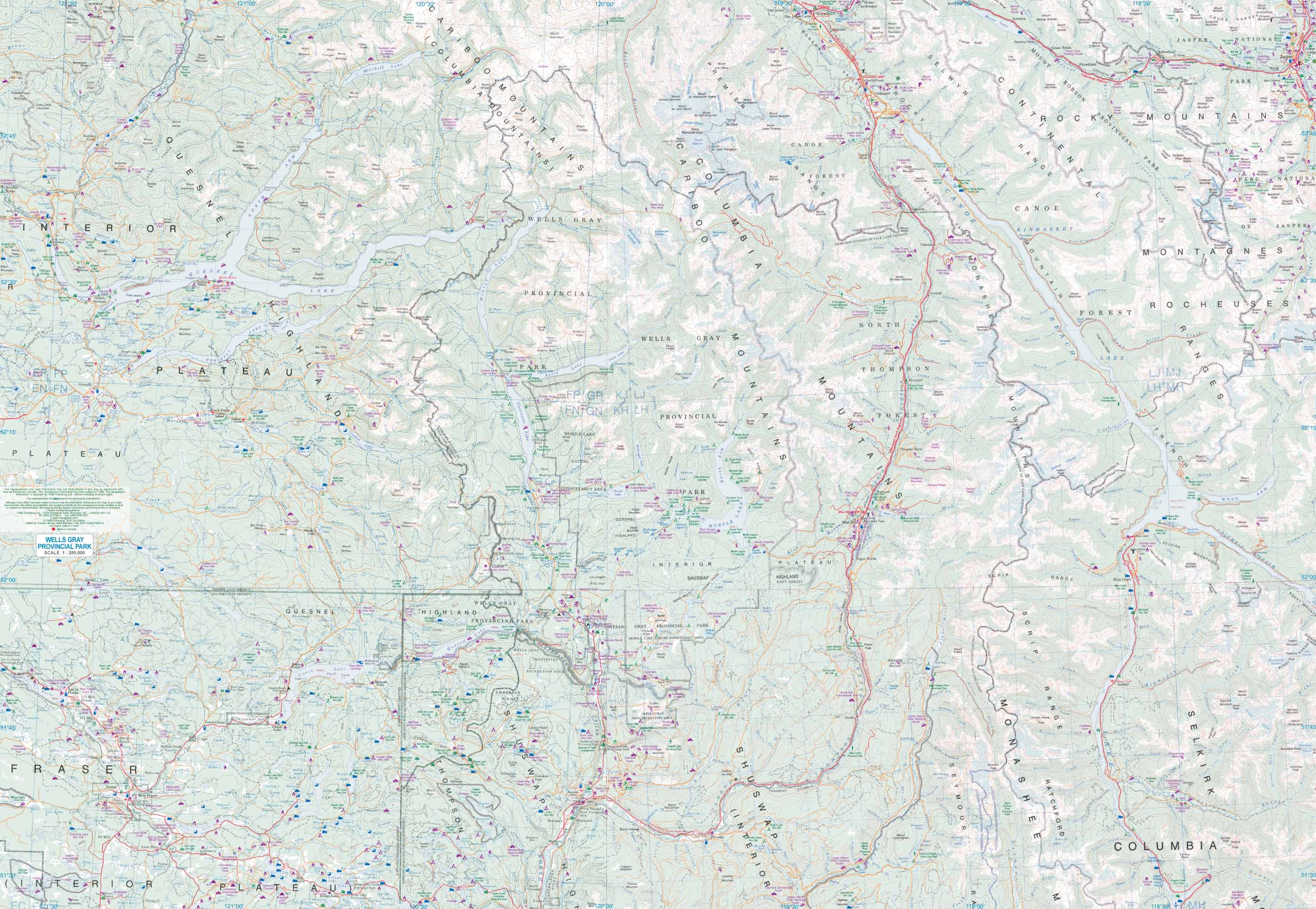 ITMB publishes several recreationally-oriented maps of various parts of the world. British Columbia is as large as all of western Europe and has, of course, a lot of wilderness. The Bowron Lakes is a vast region, consisting of a series of lakes that form an almost perfect oblong-shaped square, with easy portages between the lakes. It takes canoeists a week to paddle the nine lakes and return to the only land access to this wilderness area. Numerous camping sites are available for canoeists to rest overnight, and no motorized water craft are allowed, ensuring a pristine wilderness experience. The Bowron Lakes are unique in the world and fill one side of this double-sided map. The second side is devoted to a nearby (in Canadian terms, that means within several hundred kilometers) called Wells Gray. The heart of this wilderness area is the provincial park of the same name, which occupies an area approximately the size of Belgium. In addition, the map covers popular recreational lakes such as Canim, Mahood, Quesnel, Horsefly, and Canoe Reach, which in itself is a hundred kilometers long. Two hundred wilderness campsite are noted on this map, which probably contains four hundred lakes. The recreational opportunities are endless – snowmobile trails in winter become hiking and horse trails in summer, backroads are plentiful, parks frequent, and good, clean air is everywhere. If you want to get away from it all, this is where to go!