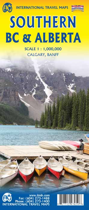 ITMB, being based in Vancouver, BC, understandably has a local/regional market for our map line. We have a map of Western Canada, as well as an atlas, a very nice map of BC itself, a map of the south half of BC, and a map of part of BC combined with Washington State. What we did not have, until now, was a map covering the most touristically-visited part of all of Canada – namely, the southern halves of both British Columbia and its neighbour, Alberta, with a small amount of Washington State, Idaho, and Montana (to assist those heading north and needing to know about border crossings). Therefore, ITMB is pleased to announce the release of Southern BC and Alberta. Side One covers BC from the US border (with a carry-on to Seattle) north to Prince George and east to the Alberta border, with a carry-on to Calgary. All of Vancouver Island, the Okanagan Valley, and the Rock Mountain National Parks of Banff and Jasper, are included. The map is rich with wilderness campsite (almost 1,000 are shown, ski areas, fishing areas, even gas stations in more remote parts of the vast province. Side Two covers Alberta from somewhat north of Edmonton (the provincial capital) to the American border and a bit beyond, and from the Rocky Mountains east to a bit beyond the Saskatchewan border. This side focusses on the movement from the high Rockies to the foothills and plains of the enormous Canadian Prairies The highlights of this side of the map are showcased in our Top Attractions guide and include such world-class features as the Drumheller Dinosaur Museum, the world's best, to the Columbia Icefield, one of the few in the world easily accessible to walk on. Naturally, the road network, train lines, urban areas, parks, and numerous attractions (who could pass up visiting Head-Smashed-In Buffalo Jump?)are all clearly shown.